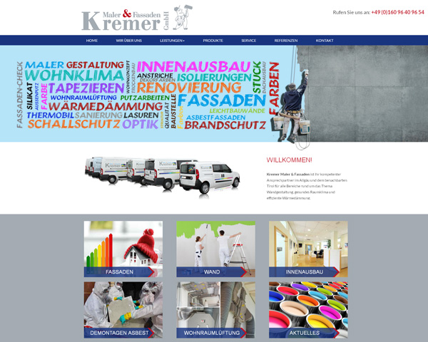 Da die bestehende Website der Maler und Fassadenfirma aus Marktoberdorf schon etwas in die Jahre gekommen ist, wurde sie von uns komplett neu gestaltet. Großer Wert wurde auf die Präsentation des großen Leistungsspektrums von Kremer Maler & Fassaden gelegt.