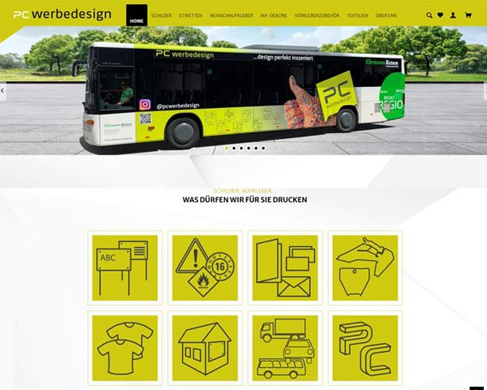 Neuer Webshop für die Werbetechnikfirma PC-Werbedesign. Realisiert mit Shopware.